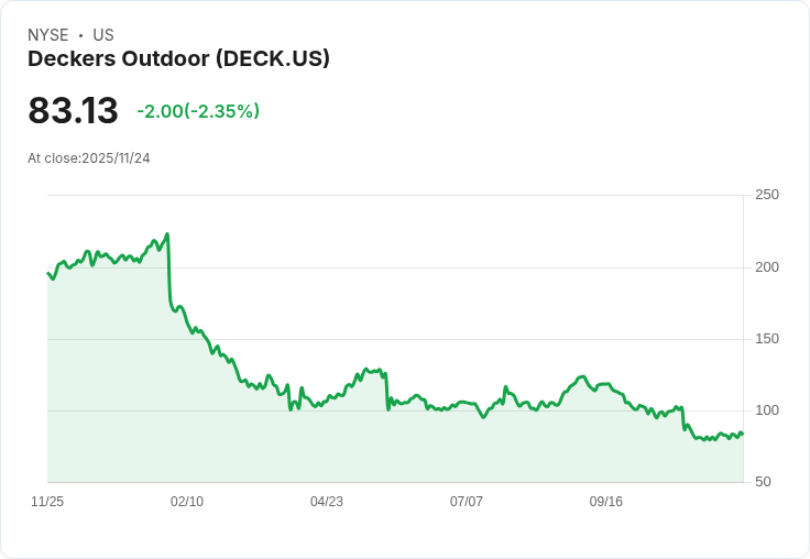 Deckers Outdoor Corporation(NYSE: DECK)近期成為投資者關注的焦點。11月18日,Stifel將該公司評級由持有上調至買進,並維持117美元的目標價。此舉是在與管理層會議後做出的決定,管理層對未來表現充滿信心,特別是Hoka品牌的增長潛力以及Ugg產品的供需狀況看漲。