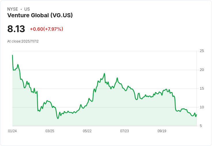 在近期的交易中,Venture Global Inc.(NYSE: VG)表現亮眼,週三股價上漲7.86%,收於8.12美元。此次漲幅主要受到該公司宣佈獲得兩項長期供應協議的推動,其中包括與日本三井物產株式會社簽訂的20年LNG供應合約,每年供應100萬噸,計劃於2029年正式啟動。此外,Venture Global還與西班牙天然氣公司Naturgy達成了另一份自2030年起生效的20年供應協議,這是該公司自2018年以來首次與西班牙企業建立長期合作關係。