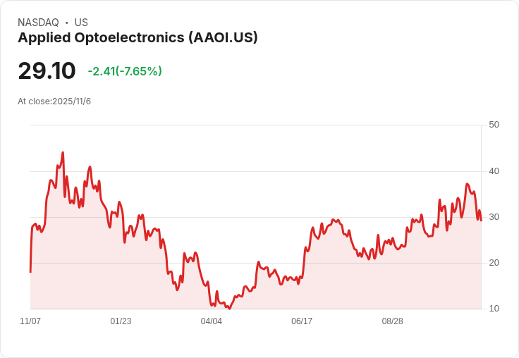 應用光電公司預測第四季營收不如預期,導致股價在盤前交易中重挫16%。管理層表示需求強勁,但交付延遲影響業績。