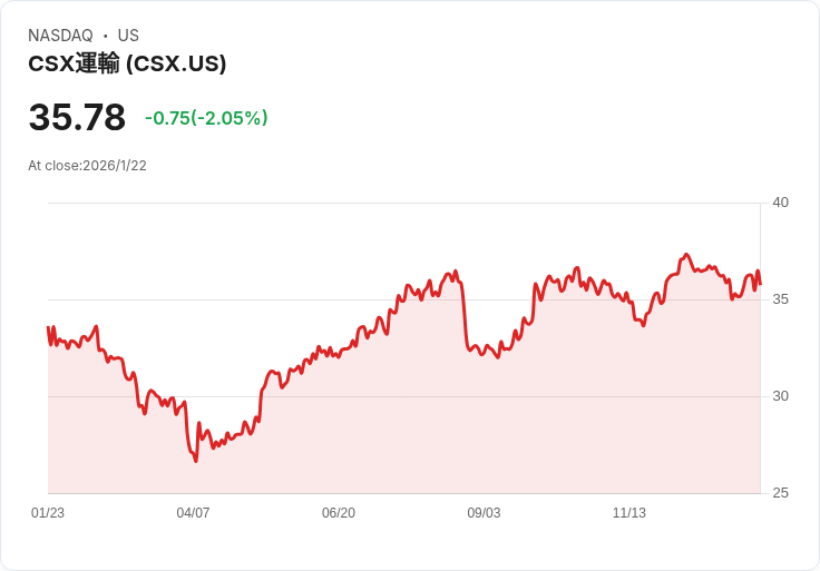 CSX Corporation是一家美國主要的鐵路運輸公司,提供廣泛的貨運服務,包括煤炭、工業產品、農產品和消費品等。公司致力於透過高效的網路運營和可靠的客戶服務來滿足市場需求。CSX的目標是成為北美最佳表現的鐵路公司,並通過持續的成本控制和資本部署來創造股東價值。