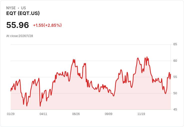 EQT Corporation(NYSE:EQT)近期受到市場關注,被認為是天然氣生產商中的核心持股。根據TheFly報導,Stephens分析師Mike Scialla將EQT的價格目標從69美元下調至68美元,但維持「增持」評級。他指出,EQT第四季度每股現金流和產量預測分別低於市場共識5%和1%。然而,Stephens相信EQT的綜合資產基礎及低成本運營結構將使其相較於同行保持高估值。
