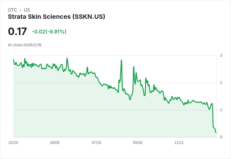 STRATA Skin Sciences (SSKN) 最近向美國證券交易委員會(SEC)提交了Form 25,宣佈其計畫撤銷普通股的註冊。自2026年2月19日起,其股票在納斯達克的交易已被暫停。根據公司的公告,SSKN 預計將於2026年3月2日左右提交Form 15,以終止其註冊並停止報告義務,這標誌著公司即將進入所謂的“黑暗”狀態。
