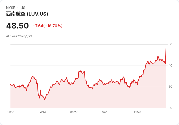 隨著西南航空(Southwest Airlines Co., NYSE:LUV)正式採用指定座位制度,該公司股價在週四暴漲18.70%,收於每股48.50美元,並一度觸及49.12美元的高點。這一變革標誌著長達54年的自由座位時代的結束,投資者對此表示歡迎,預期將提升公司的利潤率。
