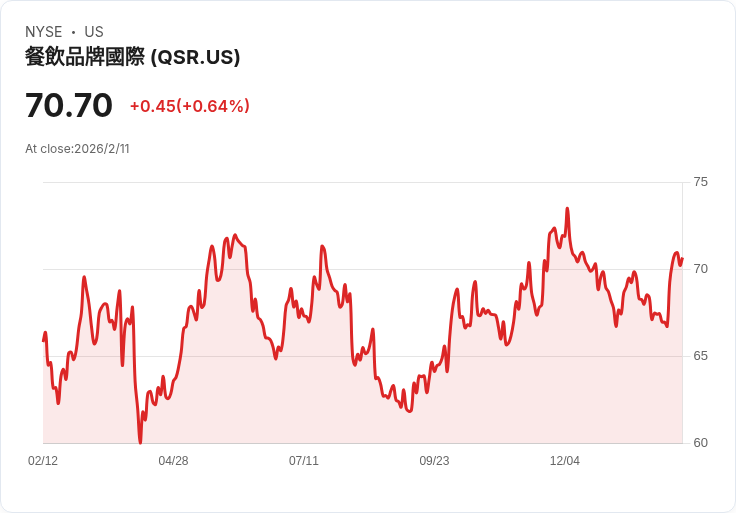 餐飲品牌國際(Restaurant Brands International, QSR)近日公佈了其2025年第四季度的財報,顯示出令人振奮的成績。該公司整體銷售增長達到5.8%,而可比銷售則上升3.1%。特別是國際市場上的漢堡王餐廳,其同店銷售更是增長了5.8%。與此同時,Popeye's的業績卻不盡人意,出現了4.8%的下降。