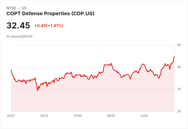 COPT防衛房地產在2025年表現卓越,CEO預測2026年每股FFO將增至$2.75,並推動多項重大預租開發。