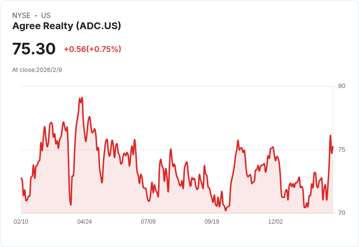 隨著Agree Realty(ADC)即將於2月10日市場收盤後發布其第四季財報,投資者對這份業績報告充滿期待。根據市場共識,每股基金營運收入(FFO)預估為1.10美元,而預計總營收將達到1.8938億美元。