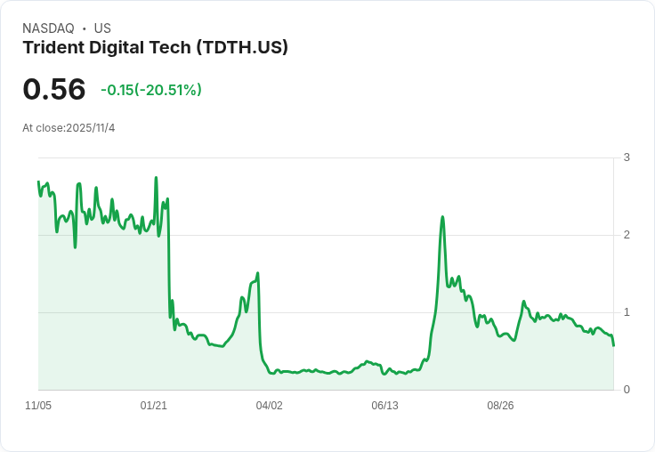 特立登數位科技(TDTH)近日收到來自納斯達克的通知信,該信函日期為2025年10月28日,指出公司股票的最低出價已連續30個交易日低於1美元,未能符合納斯達克的最低出價要求。這一情況使得公司必須在接下來的180天內,即至2026年4月27日之前,採取措施以重新達到合規標準。