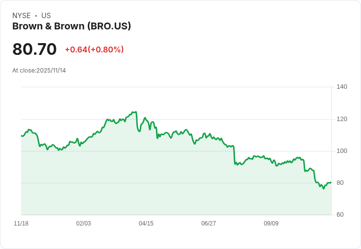 在金融市場上引起廣泛關注的是高盛最近對Brown & Brown, Inc.(NYSE:BRO)的最新評估。11月6日,高盛分析師羅伯特·考克斯將該公司的目標價格從105美元下調至90美元,並保持中立評級。他在研究更新中提到,公司目前的有機增長趨勢正遭遇挑戰。此外,在10月22日,Brown & Brown宣佈其季度股息提高10%,達到每股0.165美元,這是該公司連續第32年增派股息。同時,董事會批准了一項新的12.5億美元股票回購計劃,使得總回購金額可達15億美元。Brown & Brown多年來透過針對性收購和穩定的有機擴張,建立了龐大的全國經紀人網路,其基於費用的模式為公司帶來穩定的重複收入,成為其長期分紅記錄的重要因素。然而,儘管BRO具有投資潛力,但某些人工智慧類股被認為提供更大的上行潛力且風險較低。因此,投資者應該謹慎選擇,並密切關注市場動態。