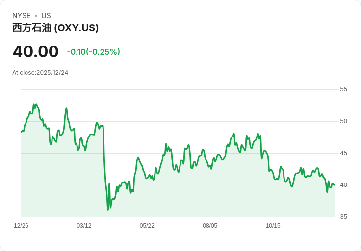 西方石油公司(Occidental Petroleum Corporation, NYSE: OXY)的股價在2025年12月17日至24日期間下跌了1.55%,成為本週能源類股票中跌幅最大的之一。該公司主要從事美國、中東及北非的獨立勘探與生產業務,近期卻受到分析師的負面評價影響。
