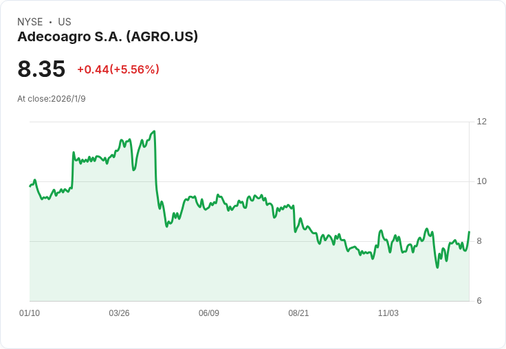美銀將Adecoagro的評級從「表現不佳」上調至「中立」,並將目標價由7.50美元提高至9美元。