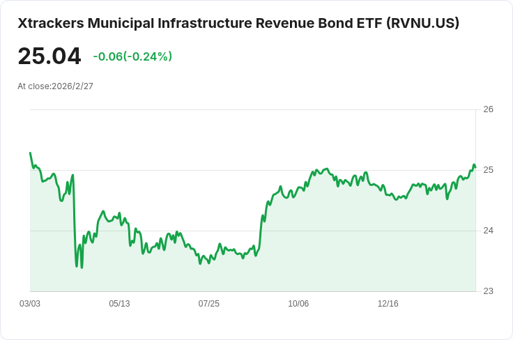 Xtrackers市政基礎設施收益債券ETF(RVNU)宣佈每股分配金為0.0739美元,支付日期定於3月9日。
