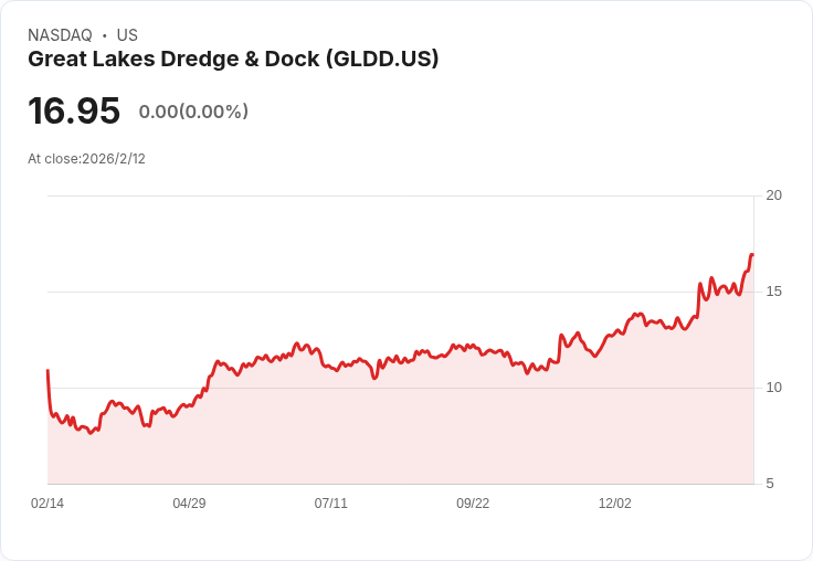 大湖疏浚與碼頭公司(GLDD)即將在2月16日市場開盤前發布其2025年第四季的財報。根據市場共識,預計每股盈餘(EPS)將達到0.20美元,同比下降31%,而營收則預估為2.163億美元,較去年增長6.7%。過去一年中,該公司100%的時間成功超越了EPS預測,而75%的時間也擊敗了收入預估。