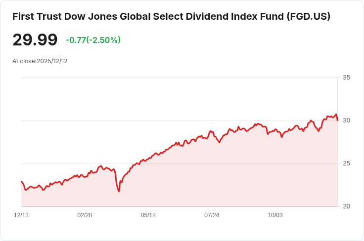 First Trust Dow Jones Global Select Dividend Index Fund ETF(FGD)近日宣佈將發放每股0.6418美元的季度股息,此訊息吸引了眾多收入型投資者的關注。根據公告,這筆股息將於2023年12月31日支付,記錄日則定在12月12日,而同一天也將是除息日。