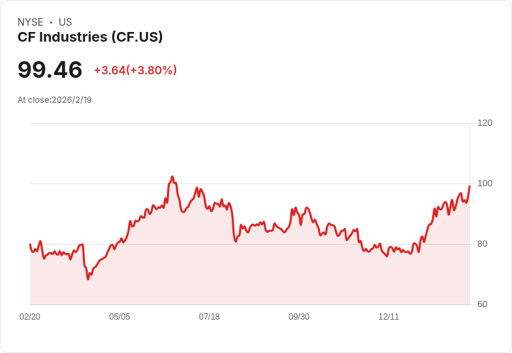 CF Industries於2025年第四季公佈強勁的財務成果,調整後EBITDA達82.1億美元,並成功回饋股東17億美元。