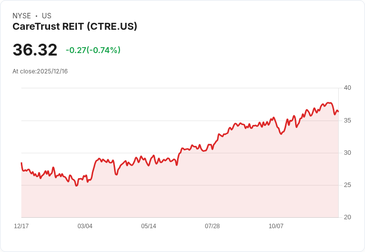 新聞:隨著CareTrust REIT (CTRE) 在過去一年中悄然超越許多收入類股票,其當前股價是否合理引發了投資者的思考。該公司目前股價約為36.32美元,今年以來已獲得近37%的回報,而三年總回報更是達到119%。這顯示出醫療房地產信託的成長勢頭依然強勁。