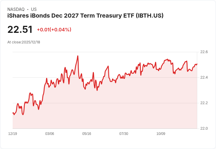 投資者注意!iShares iBonds Dec 2027 Term Treasury ETF(程式碼:IBTH)近日宣佈,每股將發放$0.0716的月度分紅。根據最新資料,截至12月17日,其30天SEC收益率已達3.52%。此項分配將於12月24日支付,記錄日期為12月19日,而除息日同樣定在12月19日。