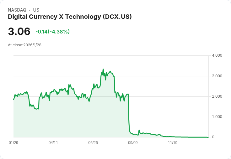 數位貨幣X科技(DCX)於2026年1月23日收到納斯達克的通知,證實其已重新符合3500萬美元的上市證券最低市值要求。根據納斯達克的評估,DCX在2025年12月23日至2026年1月22日期間連續20個工作天均滿足該要求,因此相關合規問題已結束,無需進一步行動。此訊息促使DCX股價在盤前交易中大幅上漲60.8%。