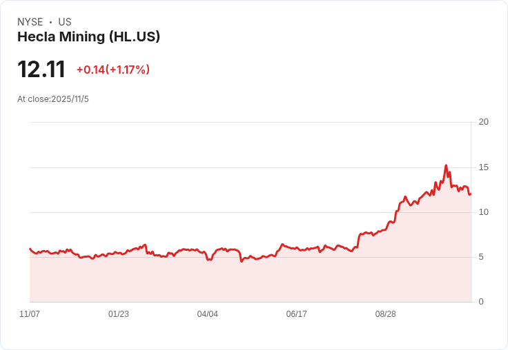 赫克拉礦業公司於最新的財報會議上宣佈,其第三季表現超出預期,CEO羅伯特·克爾馬洛夫表示:「我們本季度交出了創紀錄的成績。」該公司報告收入達410百萬美元,淨利潤為101百萬美元,調整後的EBITDA則為196百萬美元。值得注意的是,公司的淨負債從去年同期的1.8倍降至0.3倍,這一變化顯示出公司結構性去風險的成功。