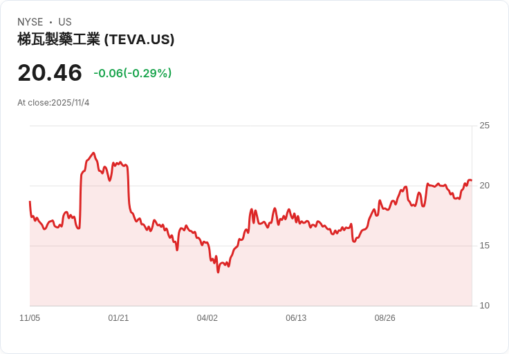 Teva藥業在第三季表現超出預期,股價大漲11%。公司調整後每股收益達0.78美元,並提高全年營收預測,顯示轉型成效明顯。