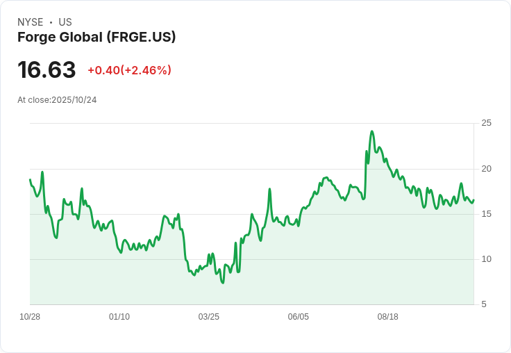 受報導影響,Forge Global Holdings 股價在週一交易中上漲11%,因公司正在探索出售選項以應對市值下滑及現金減少的困境。