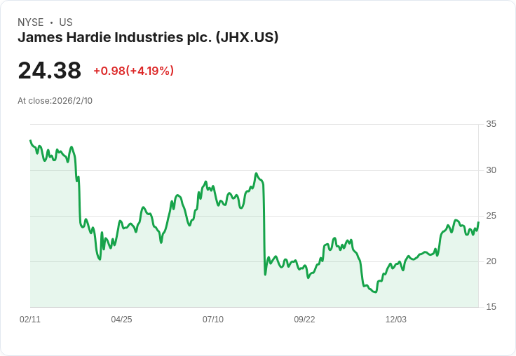 根據背景資料,詹姆斯·哈迪是一家專注於建材及相關產品的企業,隨著住宅市場的波動,公司一直努力調整其業務策略以應對不確定性。儘管本季度的營收未達預期,該公司已提高2026財年的EBITDA指引至12億至12.5億美元,顯示出在成本和收入協同效應下的積極前景。