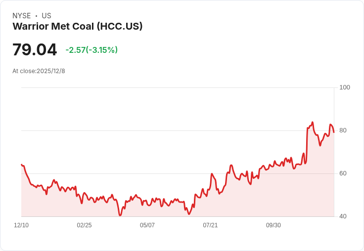 華勇煤業(Warrior Met Coal, Inc.)的最新牛市論點在於其強勁的財務基礎和卓越的營運表現。根據報導,截至12月2日,HCC的股價為78美元,顯示出該公司在困難市場中的韌性。最近的收益報告反映了這一優勢,使得股價上漲15%。