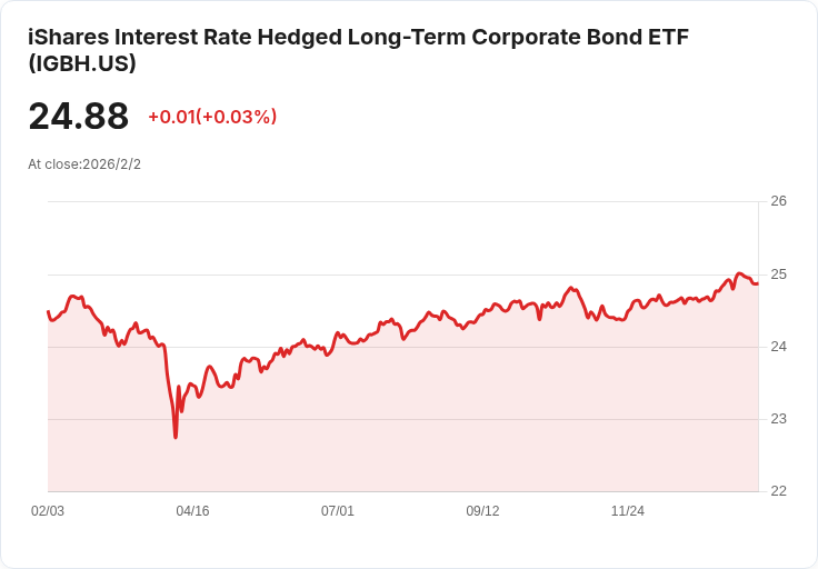 iShares利率對沖長期企業債ETF (IGBH) 宣佈每股派息0.1029美元,並提供4.98%的30天SEC收益率。