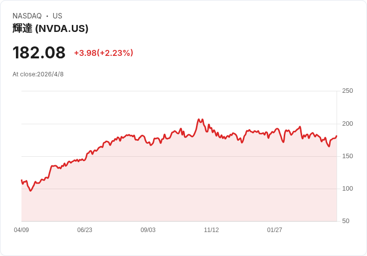 NVIDIA(NVDA)在連續盤整後出現明顯反彈,過去六個交易日累計上漲超過10%,為自去年十月以來最長的連勝走勢,並在週三收於約182美元,接近技術面關注的185美元關卡,但週四盤中小幅回落0.5%。