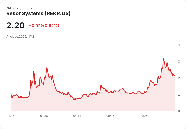 Rekor Systems 在最新的第三季財報中顯示,其每股虧損縮小至 -$0.03,較市場預期好出 $0.02,這一表現吸引了投資者的注意。公司本季營收達到 1420 萬美元,同比增長 34.6%,超過分析師預測的 1350 萬美元。