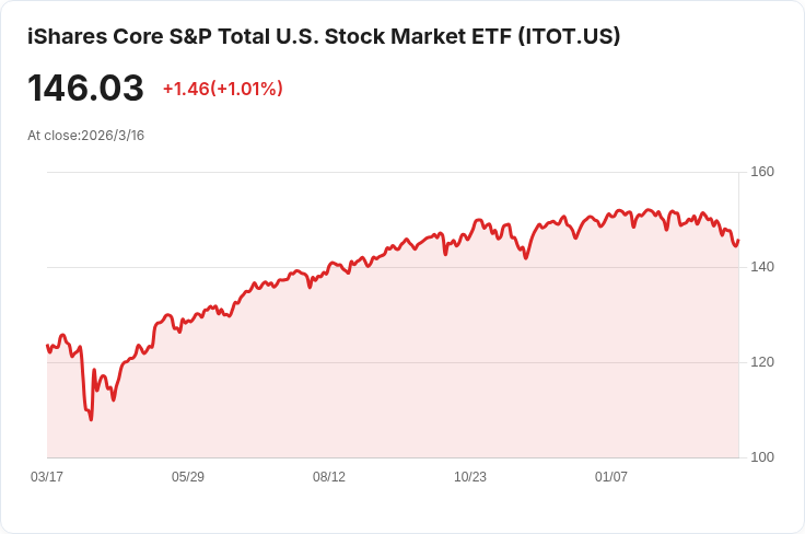 iShares Core S&P 總美國股市ETF (ITOT) 宣佈將於3月20日支付每股$0.3267的季度股息,吸引投資者關注。