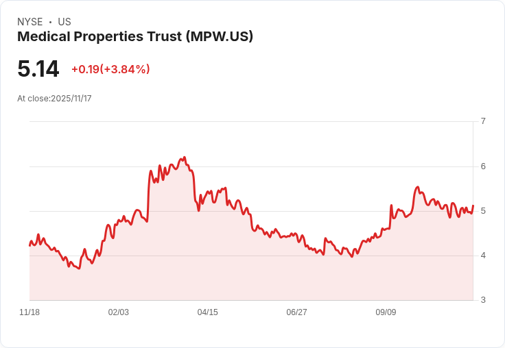 醫療財產信託公司(Medical Properties Trust Inc., NYSE:MPW)近日因宣佈將季度股息提高12%,吸引了眾多投資者的注意。週一,該公司的股價上漲了3.94%,收於每股5.14美元。根據公司的公告,截至12月11日的普通股東將在2026年1月8日獲得每股0.09美元的股息。
