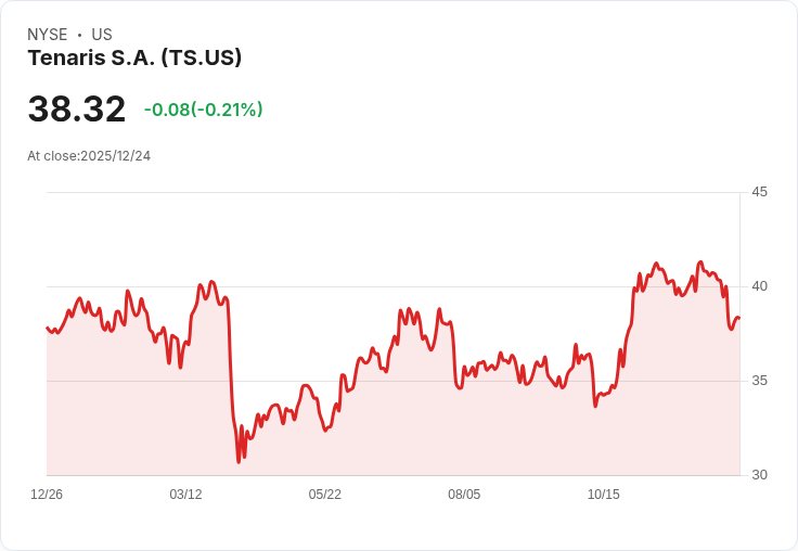 新聞: Tenaris S.A.(NYSE:TS)近日股價於2025年12月17日至24日間下跌了4.25%,成為本週能源類股中表現最差的幾檔之一。作為全球能源產業及某些工業應用的主要管材製造商,Tenaris也供應低碳能源應用所需的管材和管狀元件。然而,摩根士丹利於12月15日對該公司給予「減持」評級,目標價格上調至36美元,顯示其對短期內北美陸上支出的前景感到不樂觀,因為油市環境仍然不確定。同一天,高盛分析師米歇爾·德拉維尼亞則以「中性」評級開始覆蓋Tenaris,目標價格設定在43.6美元。分析師認為,該股短期內缺乏增長動力,且進入2026年的市場位置將不如預期,尤其是考量到其較高的美國頁巖油暴露率。