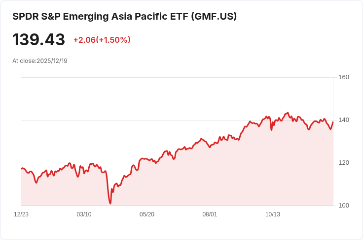 投資者們注意!SPDR® S&P 新興亞太區ETF(GMF)近日宣佈將於12月29日支付每股$1.2023的半年度股息,這對於尋求穩定收入的投資者來說是一個好消息。根據最新資料,截至12月18日,其30天SEC收益率為1.45%。此股息將針對在12月22日登記的股東,而該股票的除息日同樣設定在12月22日。隨著市場波動加劇,這項股息不僅能吸引新投資者,也顯示出基金管理方對未來收益的信心。儘管有觀點認為高股息可能伴隨風險,但GMF的表現仍值得關注,預期其在未來會持續增長,成為更多投資組合中的重要一環。