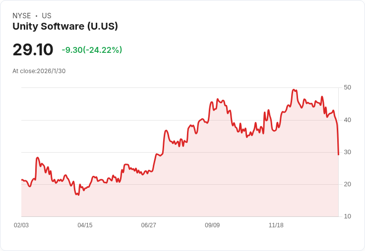 目前,Unity的股價約為每股29.1美元,過去一週下跌32.3%,而過去一個月更是下降34.2%。儘管如此,該公司股票在過去一年中仍上漲36.0%,但長期持有者卻面臨五年內76.7%的重挫,顯示出市場情感的劇烈波動。