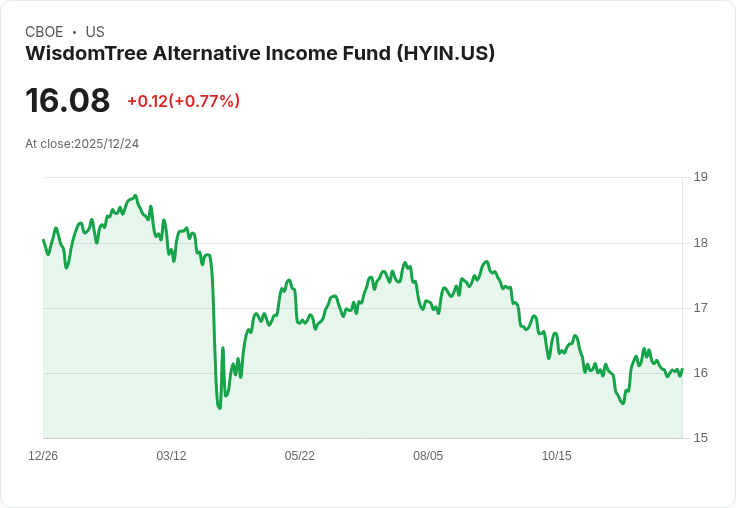 WisdomTree替代收入基金ETF (HYIN) 宣佈將發放每股$0.2338的股息,支付日期為12月30日。