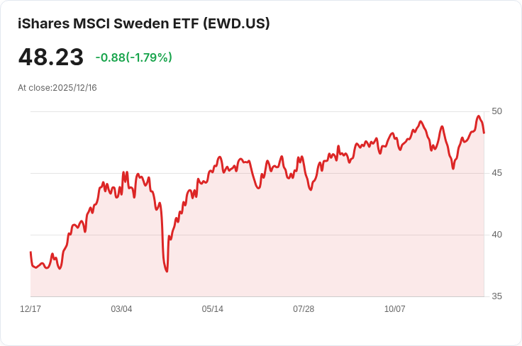 iShares MSCI瑞典ETF(EWD)宣佈將於12月19日支付每股$0.6012的配息,股東需在12月16日前登記。