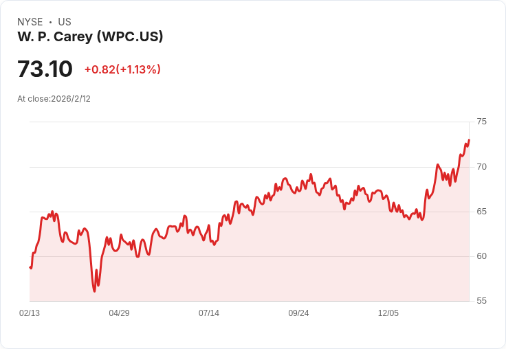 然而,在此訊息發布後,W.P. Carey 股價在盤後交易中下跌了1.25%,報72.18美元。分析師指出,雖然短期內股價波動,但公司長期投資策略仍具潛力,尤其是針對零售和工業領域的增長規劃。隨著未來幾年投資量目標設定在 $12.5億至 $17.5億之間,W. P. Carey 將持續吸引投資者關注其財務表現與市場機會。