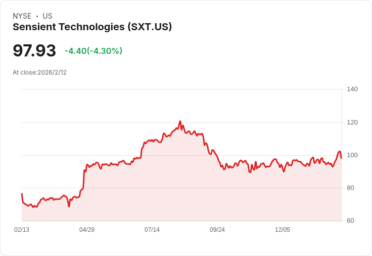Sensient Technologies 公佈第四季財報,非GAAP每股盈餘為 $0.72,低於市場預期;營收達 $393.4M,也未能滿足分析師預測。