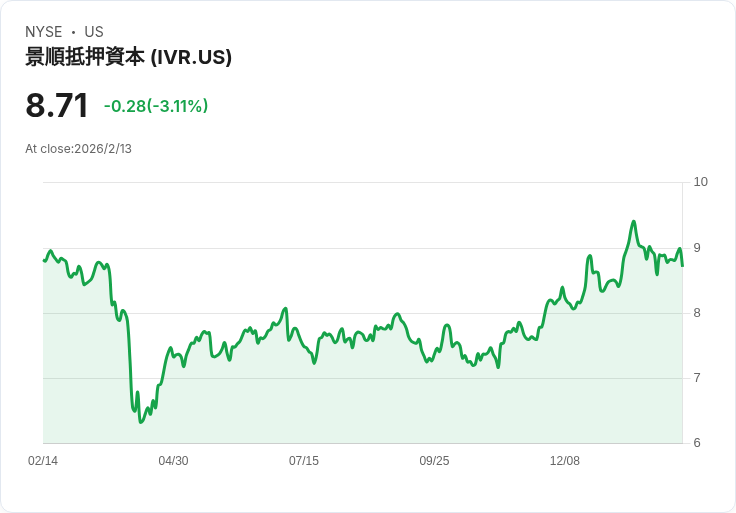 Invesco Mortgage Capital (IVR) 最近宣佈將發放每股 $0.12 的月度股息,此舉與之前的派息金額一致。這項公告讓許多尋求穩定現金流的投資者感到振奮,尤其是在當前市場環境下,其年化收益率高達 16.53%。根據公告,該股息將於 3 月 13 日支付,記錄日期為 2 月 24 日,而除息日也同樣設在 2 月 24 日。