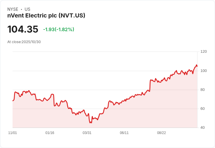 nVent Electric PLC 在第三季度報告中顯示銷售額首次超過十億美元,並上調全年指引,反映出強勁的增長勢頭。