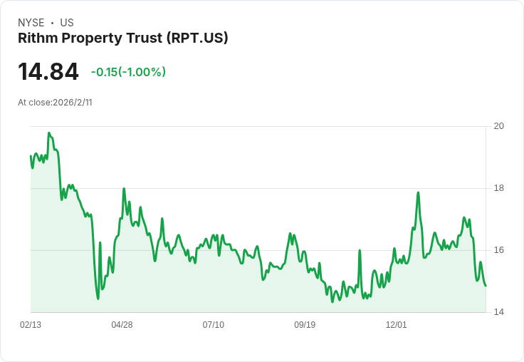Rithm Property Trust (RPT) 將於2月13日美股開盤前發布其2025年第四季的財報,引發投資者關注。根據市場共識,該公司每股盈餘預估為-0.10美元,同比驟減1100%,而預期的總營收為483萬美元,同比下降14.2%。這一數字顯示出RPT在面對挑戰時的艱難處境。