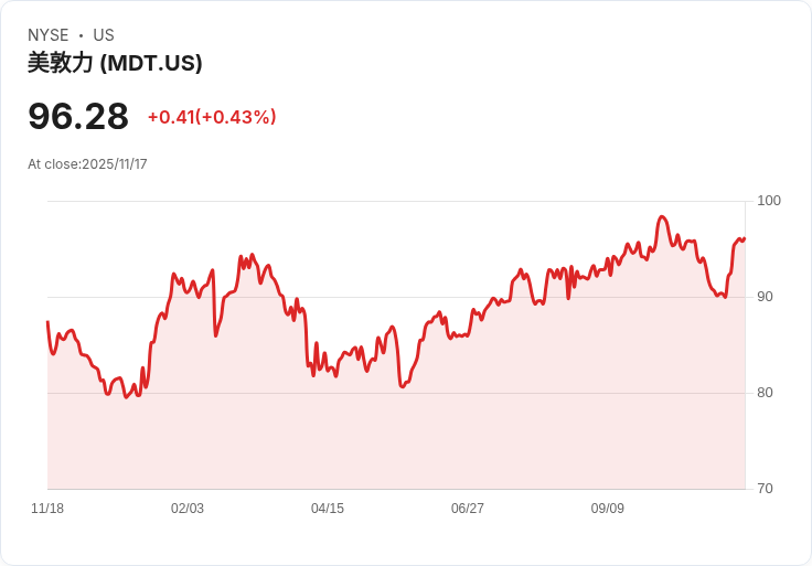 美敦力公佈第二季財報,非GAAP每股盈餘達1.36美元、營收8.96億美元,均優於預期,並上調2026財年成長預測。