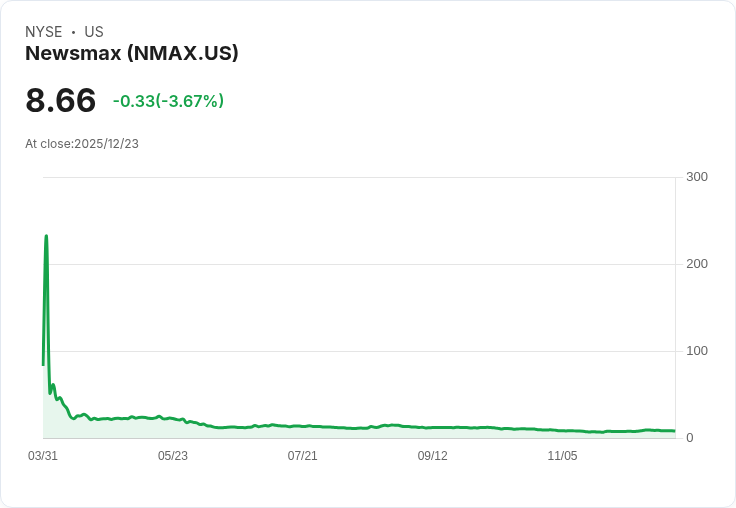 近日,Newsmax 的股價表現引發市場關注。這家保守派媒體公司自2025年首次公開募股(IPO)以來,其股價曾一度飆升至每股233美元,但如今卻回落至約9美元,顯示出其估值過高的問題。儘管目前市值達到11.8億美元,但由於尚未實現盈利,難以用傳統指標評價其價值。