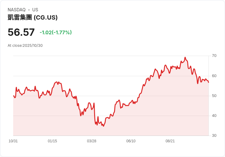 卡萊爾集團(Carlyle Group Inc., CG)近日公佈了其2023年第三季財報,結果顯示該公司非GAAP每股盈餘為0.96美元,與分析師預期的0.02美元差距,造成股價在盤後交易中下跌約2%。這一數據引發市場關注,因為投資者原本寄望於更佳的表現。