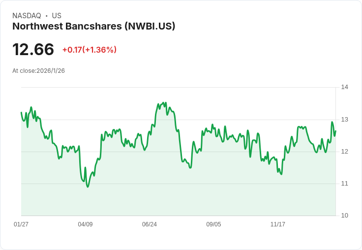 西北銀行(Northwest Bancshares)第四季度非GAAP每股盈餘為0.33美元,超過市場預期;營收達到1.79億美元,同比增長16%。