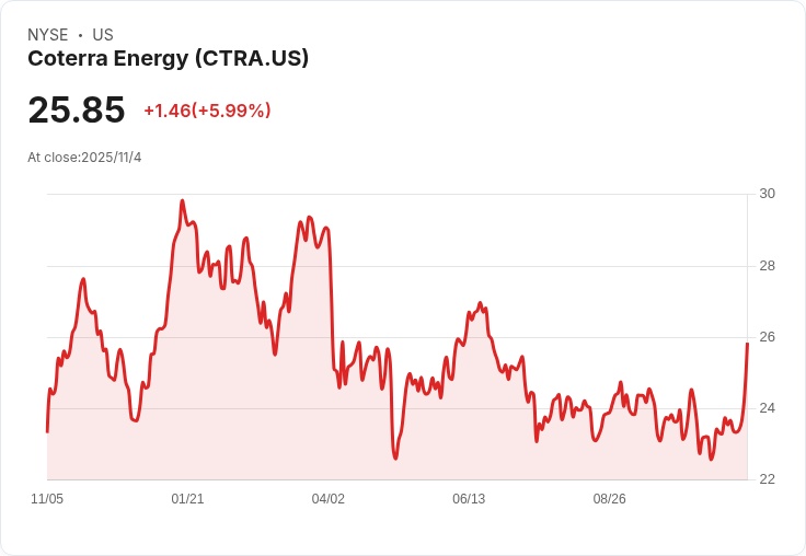 Coterra Energy Inc.是一家美國能源公司,專注於油氣資源的勘探、開發和生產。公司擁有多元化的資產組合,涵蓋美國主要的油氣盆地,包括Permian Basin和Marcellus Shale。Coterra致力於透過高效的運營和戰略性資產管理來創造股東價值。