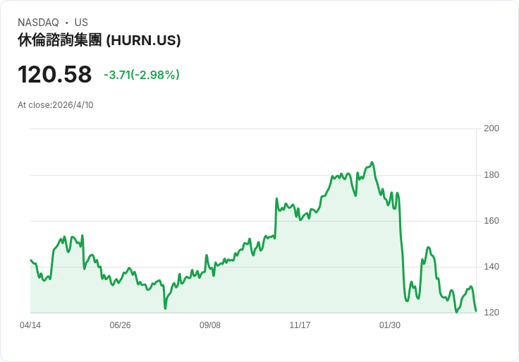 Huron Consulting Group(現價約120.54美元)近期股價半年下跌18.4%,遠遜於同期標普500上漲2.5%,投資人不禁要問:這次回檔是否提供了買進良機?