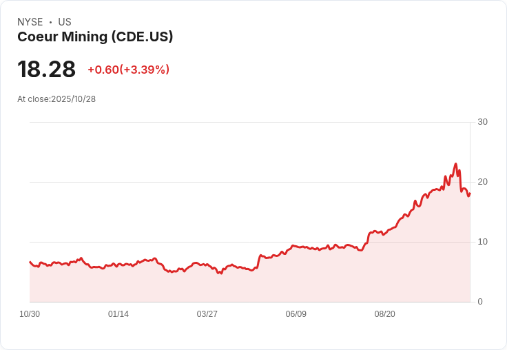 Coeur Mining 在最新的新聞稿中宣佈其第三季度的財務表現令人滿意。公司報告顯示,其每股非GAAP盈餘為 $0.23,符合分析師的預期,而營收則達到 $554.6M,比預期高出 $5.13M,年增幅高達76.9%。這一強勁的業績反映了公司在金銀生產方面的持續增長。