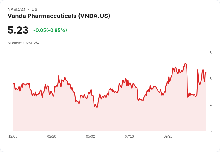 Vanda Pharmaceuticals(VNDA)近日傳來喜訊,因美國食品藥品監督管理局(FDA)解除其針對tradipitant的部分臨床限制,導致公司股價在盤後交易中驟升約7%。這一決定標誌著FDA確認了運動病是一種急性、自限性的生理反應,而非慢性或間歇性疾病,因此不再需要額外進行六個月的犬類毒性研究。