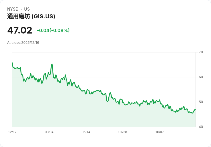 通用磨坊(GIS)將於12月17日公佈第二季度財報,市場預期每股盈餘將下降26.4%,營收也面臨8.8%的衰退。